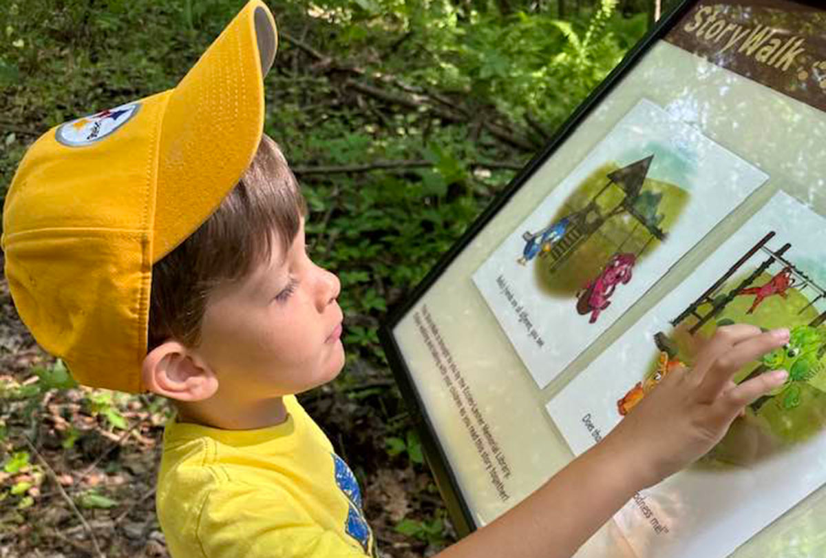 Earlier this year, The Eccles-Lesher Children’s Library in Rimersburg, Pennsylvania partnered with Pannier Graphics to create an immersive StoryWalk® experience along the Sligo Spur of The Redbank Valley Trail.