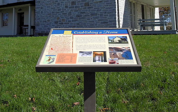 This base is low-key and extremely sturdy, with the frame sitting angled on one centered post. The Single Pedestal base is also used for Pannier Storywalk Exhibits.